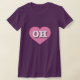 Esta t-shirt apresenta um coração cor-de-rosa tranquilo e legal, contendo as letras maiúsculas, brancas, negros, OH, a abreviação oficial de Ohio, o estado do buque.
