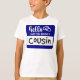 A camiseta com crachá de nome azul real é uma ótima maneira para a prima da noiva se misturar com a família, amigos e comitiva de casamento. A vibrante camiseta se destacará nas fotos e vídeos do chá de casamento, reunião de família e jantar de ensaio. Olá, eu sou a prima da noiva. Use esta camisa divertida nas celebrações de noivado, casamento e aniversário do casal feliz. O design da camisa inclui dois anéis de casamento de noiva e noivo entrelaçados como um símbolo de amor. Este design de crachá de nome de comitiva de casamento é adequado para fundos brancos e de cores claras.