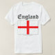 Este t-shirt clássico mostra a bandeira inglesa de St George no vermelho e no branco patrióticos, com a "Inglaterra conhecida" escrita acima na rotulação inglesa do "olde preto". Ideal para o dia de St George ou o campeonato do mundo do futebol!
