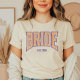 Celebrate your engagement era with this orange + beige stripe with navy BRIDE design. The classic collegiate lettering gets a modern update with a modern stripe fill. Perfect for engagement parties, bridal showers, bachelorette weekends, and wedding prep days. Click on "personalize this design" to add your details. Matching wedding party gifts, Bridal Shower Accessories, and Bachelorette Party must-haves are available. Please message us with questions or to request custom items. Pair this comfy tee with jeans or a matching set for a photo-ready look that says Bride Energy. Wear it as a cozy sleep shirt or a swimsuit cover-up. Also available on sweatshirts and hoodies for travel or lounging with your bridal crew.
