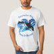 Uma ilustração brilhante do estilo da aguarela de uma baleia da orca contra um teste padrão de onda azul estilizado. Tema náutico, praia, verão, oceano, animal aquático. Personalize-o com sua mensagem conhecida ou feita sob encomenda.