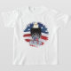 A águia-americana orgulhosa está em frente às estrelas e listras da bandeira americana com texto prateado dos EUA. Esta é uma design patriótica que você pode se orgulhar de vestir.