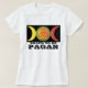 Na frente: Num fundo negro, três fases da lua, um ouroboro, e um triquetra, com PROUD PARA SER PAGAN embaixo.