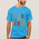 Uma declaração ousada de dedicação enfeita esta camiseta. A frase "Orgulho de servir" é exibida em um design multicolorido, com cada palavra apresentando uma tonalidade vibrante diferente.