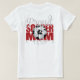 Camiseta com a Mãe de Futebol Orgulhoso na parte de trás em letras vermelhas; personalizada na área do bolso da frente com o nome da mãe ou da criança que começa com a letra "K".
