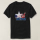 Bandeira americana na forma do mapa dos EUA, estrela branca com contorno azul, texto vermelho e azul Orgulhoso de ser americano. O Dia da Independência e outras ocasiões presentes e lembranças patrióticos para qualquer um. Camiseta para qualquer um. Personalizável. Você pode mudar a imagem. Não se esqueça de escolher outro estilo ou cor da camisa. Aproveite!