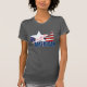 Bandeira americana na forma do mapa dos EUA, estrela branca com contorno azul, texto vermelho e azul Orgulhoso de ser americano. O Dia da Independência e outras ocasiões presentes e lembranças patrióticos para qualquer um. T-shirt para ela escurecer. Personalizável. Você pode mudar a imagem. Não se esqueça de escolher outro estilo ou cor da camisa. Aproveite!