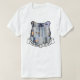Desenho de um escudo heráldico com colagem fotográfica embutida de pernas em jeans azuis com furos nos joelhos e uma faixa com o texto Membro orgulhoso da tribo sob o escudo. Camisas engraçadas e tampas de tanques para qualquer um. Personalizável. Você pode mudar a imagem. Não se esqueça de escolher outro estilo de camisa. Divirta-se com jeans azuis com buracos.