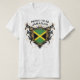 Design legal da crista com a bandeira nacional de cores e de subtítulo de Jamaica: Orgulhoso ser jamaicano. Grande presente jamaicano do orgulho.