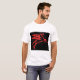 Esta camisa caracteriza uma foto de um néon Pegasus que gire em uma torre que se assemelha a uma plataforma petrolífera em Dallas do centro