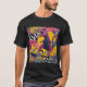 A highly detailed pink T-Rex shreds a board amid baroque swirls, a bold yellow sun, and black-and-white checkers. Vibrant linework and filigree textures create a striking, energetic pop-art statement.