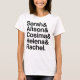 Esta camiseta Orphan Helvetica mostra Sarah e todos os seus clones em uma camiseta branca.