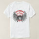O crânio de aço de Badass com asas da hetero-lâmina, capacete de couro & óculos de proteção, "bufos obtem pontos" na rotulação gótico, e o fundo vermelho do splatter. T-shirt & ganhos do presente.