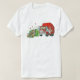 Camisa preta com um caminhão de lixo que empurra um contentor sobre.