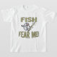 Os peixes temem-me os t-shirt e os presentes que caracterizam um peixe de vista engraçado que scared do grande pescador que deixa cair seu gancho na água. Um grande presente para qualquer um que ama pescar.