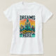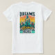 A design da camiseta "Dreams Grow Here" apresenta uma ilustração vibrante de uma árvore florescente, simbolizando o crescimento e o potencial. Cada ramo está cheio de flores e folhas coloridas, representando sonhos, aspirações e realizações pessoais. As raízes da árvore são intricadamente detalhadas, embasando a design e evocando a ideia de que fundações fortes levam ao crescimento do excelente. As palavras "Sonhos Crescem Aqui" estão tecidas nos ramos, dando a impressão de que fazem parte do crescimento natural da árvore. O sentimento geral é esperançoso e inspirador, fazer perfeito para quem acredita em alimentar seus sonhos.