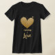 Um t-shirt preto das mulheres chiques bonito femininos impressionantes que caracteriza um coração feminino da aguarela bonito doce do splatter do ouro que tenha as palavras "FUNCIONAR NO AMOR" abaixo dele.