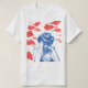A minimalist design of a young woman in soft blue, her expression thoughtful and introspective. She is surrounded by swirling red clouds, symbolizing the chaos and intensity of overthinking. The vibrant red clouds create a striking contrast against the calm blue of the figure, capturing the inner turmoil and mental restlessness. The design, titled 'Overthinking', conveys a powerful mix of calm and unease, evoking the emotional weight of constant contemplation.