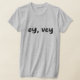 "Express your personality with this classic 'Oy Vey' Yiddish saying t-shirt! Featuring a clean and simple typography design, this shirt captures the essence of Jewish humor and cultural expression. Whether you're having a long day or just want to share a relatable sentiment, this funny graphic tee is the perfect choice. It makes a thoughtful gift for friends and family who appreciate a good laugh and their heritage. Durable, comfortable, and stylish for everyday wear."