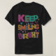 design colorido com a frase "Mantenha o brilho sorridente" em um padrão geométrico, com cada letra em uma tonalidade vibrante diferente.