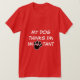 T-Shirt Pai de Cachorro PERSONALIZADO divertido com texto que diz MEU CACHORRO ACHA QUE EU SOU IMPORTANTE, mas o POR é substituído por uma IMPRESSÃO PAPEL DE CACHORRO preto. O texto é parcialmente PERSONALIZÁVEL - você pode substituir MY DOG e personalizar com um nome, por exemplo, o nome do seu animal de estimação (ou até o nome do seu chefe!). A tipografia sans serif está em BRANCO. Há também uma Camisa-Cachorro igual disponível.