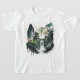 Uma camisa legal de meninos brancos mostrando uma ilustração tinteiro de uma paisagem com a antiga arquitetura chinesa e majestosas cachoeiras.