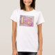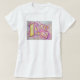 Cores d'água pintando a palavra amarela ouro "Amor" com um duplo coração. Rosa e roxo destaca as letras e o coração. Uma luz de brilho no topo dá à pintura um brilho brilhante. Faça uma camiseta personalizada de pintura de arte do Word com sua própria mensagem de amor e fotos para presentes especiais de camisa de amor!