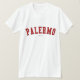 Verifique para fora este t-shirt de Palermo! É você de Palermo, Italia? Você tem um amigo ou um membro da família que amem Palermo, Italia? Em caso afirmativo, este t-shirt da "bandeira" é exatamente o presente que você está procurando! As características de design "Palermo" na rotulação vermelha arqueada na pia batismal clássica da faculdade.