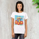 Um palhaço feliz engraçado entre flores amarelas com rostos. Esta design parece muito eficaz nesta Camiseta das Mulheres