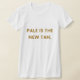 PÁLIDO É O TAN NOVO. Quem precisa um tan, de qualquer maneira? Obter um tan causa o cancer de pele! Mostre seu acordo com esta camisola de alças impressionante! Amarelo/canário com palavras acastanhadas: "PÁLIDO É O TAN NOVO."