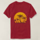 Vector a ilustração de um por do sol tropical e de palmeiras em um paraíso pequeno da ilha das férias.