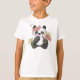 Uma panda do bebê que senta-se com suas flores cor-de-rosa e amarelas.