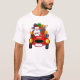 Papai Noel e a rena vermelha do nariz que conduz em presentes de distribuição e em presentes de um Natal do carro desportivo vermelho