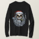 Crânio de Papai Noel com barba branca comprida, chapéu de Papai Noel, óculos redondos e chamando um charuto fumante. Desenho colorido, caneta e tinta em t-shirts, camisas de suor, cartões e artigos de presente.