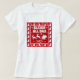 Camisa branca na moda e fofa para mulheres mostra uma trendy festas de Natal 'dormigh all day' design de festas brancas de festas de festas com santa claus e flocos de neve e sotaques de estrelas em fundo vermelho de prancha de xadrez.