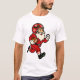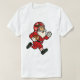 Papais noeis de desenho animado com uma cruz de terno vermelho com uma bola de futebol, misturando o natal com a energia esportiva. Paleta vibrante, contornos grossos, pose atlética para vestuário atlético festivo.