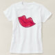 Um par de lábios vermelhos brilhantes com um pouco de brilho e um contorno roxo e amarelo. Os destaques brancos sutis dão-lhe um olhar brilhante.