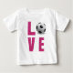 Desenho de palavras Amo Futebol com letras de brilho rosa quente e o "o" é substituído por uma bola de futebol.