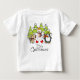 Uma camiseta design de Natal bonita e colorida, com um urso polar, pinguim e rato todos com lenços e skates de gelo com árvores cobertas de neve e texto que diz É Natal!
