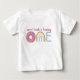 Personalize a camiseta do primeiro aniversário do seu bebê com o nome dele. Um "um" caprichoso feito de um arco-íris e donut.