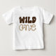 Celebre o primeiro aniversário do seu pequeno com esta camiseta temática western rústica! O design apresenta um tema cowboy. O texto está em uma fonte negrito e diz "SELVAGEM". Esta camiseta é perfeita para qualquer pequeno cowboy ou cowgirl. Também é uma ótima maneira de definir o tom para uma festa temática do oeste selvagem. Aperte a sela e prepare-se para uma viagem selvagem!