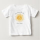 Esta camiseta de bebé adorável apresenta um sol amarelo sorridente e a frase "Aqui Vem o Filho" em tipografia de letra estilosa. É facilmente personalizável. Aquarela Original © Michele Davies.