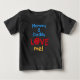 As mamães e o pai amam-me t-shirt, camisetas longas da luva, camisolas, hoodies do pulôver, chapéus, camisas do plissado, vestidos sem mangas, vestidos do plissado, t-shirt do raglan, bodysuits do futebol, bodysuits orgânicos, e o outro roupa para o bebê com texto de vermelho, de azul, e ouro com um coração que leia mamães e pai ama-me!