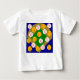 Esta t-shirt de bebê tem um design de bola com tema de um campo de bola feito de diamantes e semicírculo e bolas de basebol e softbolas feitas de círculos com fios.