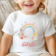 Camiseta Para Bebê Boho Rainbow Floral Pastel "One" Primeiro Aniversá