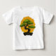 Uma bela ilustração de uma árvore bonsai que se senta num pote preto contra um fundo circular amarelo brilhante.