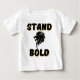 Esta camiseta bebê tem uma design que exibe as palavras "Stand Bold" em uma impressão em negrito com uma letra preta sobre uma sombra colorida de ouro com um ícone de leão preto e dourado no centro neste tema de citação bíblia baseado em fé. Essa camisetas é confortável, casual e de tamanho padrão, feita de algodão com anel penteado de 4,5 oz 100%, com sulcos de agulha dupla e mangas para durabilidade extra com etiqueta de rasgão fácil.
