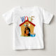 Um cachorro fofo com uma bola e um prato de comida, uma casa de cachorro, e texto colorido que lê WOOF em T-shirts de Cachorro, camisetas compridas de manga, fatos-tronco, fatos de futebol, capuzes orgânicos, capuzes de pullover, camisolas de camisola, roedores, chapéus e outras crianças, bebê e roupa de bebê!