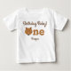 Uma camiseta de primeiro aniversário para o seu bebê. O esquema de cores da camisa de bebê é branco e castanho com a palavra "um" em letras grandes, com uma ilustração do rosto de urso como primeira letra da palavra. Simplesmente, personalize esta camisa, adicione-a ao seu carrinho, e feliz aniversário ao seu bebê maravilhoso! Belo Urso Primeiro Aniversário Camisa de Camisa de Natal Design | ©Melissa Patton — Artista/Ilustrator