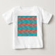 Esta camiseta de bebê tem um design de deco de arte de dois círculos cor de laranja e lacrimejo dentro de dois tons de laranja e triângulos de lacre.